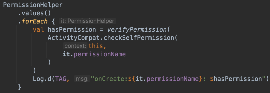 아래와 같이 forEach로 다 확인한 다음, 유저에게 Permission을 요청해야 합니다.