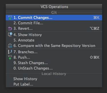 아래 단축키를 누르면, Git관련 메뉴들도 보여줍니다.