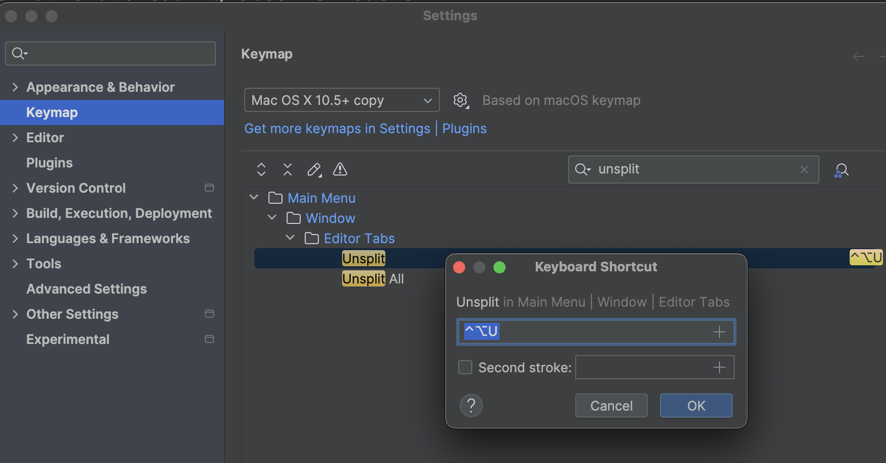 참고로 저는, 아래와 같이 unsplit도 단축키를 만들어서 사용하고 있습니다.