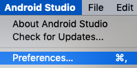 Android Studio> Preferences 혹은 "cmd+," 단축키를 이용해서 Preferences창을 엽니다.