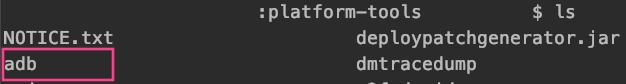 cd 명령어를 통해서 이동한 후 adb를 발견했습니다.