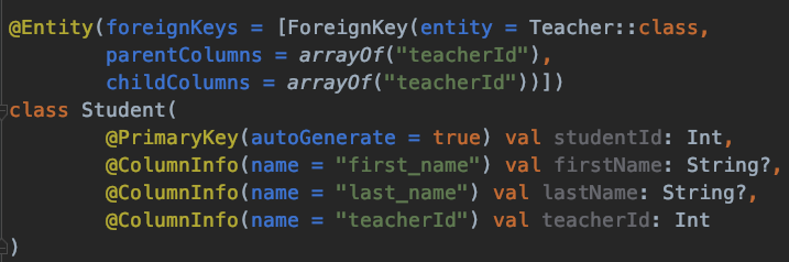 @foreignKey를 이용해, parentColums와 childColumns를 아래와 같이 사용할 수도 있습니다.