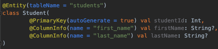 - PrimaryKey - @PrimaryKey라고 애노테이션을 붙여줍니다.