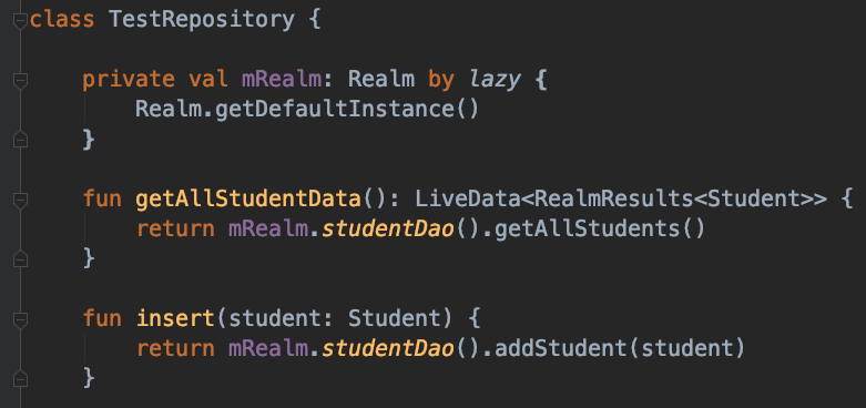 ViewModel에서 직접 Realm데이터 베이스의 Dao클래스를 이용해서,