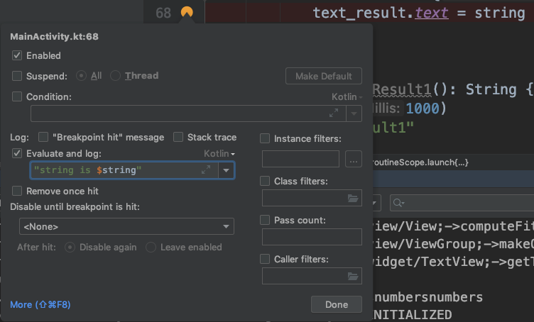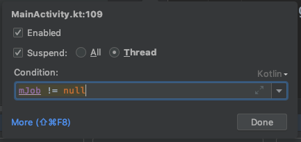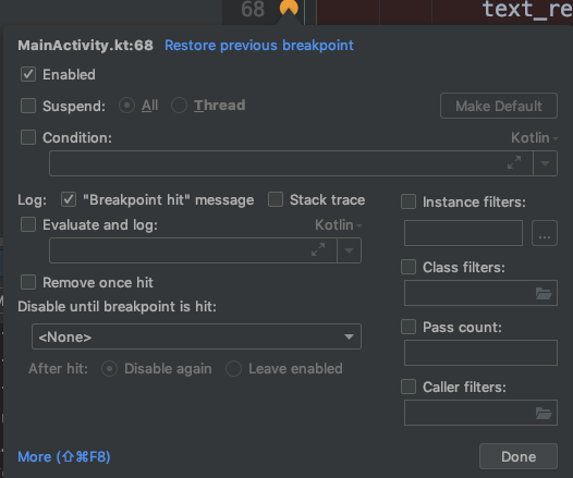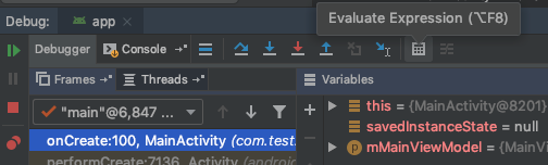 안드로이드 스튜디오에서 디버깅을 실행시켜서 Break Point에서 suspend되었다면,