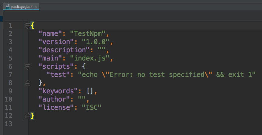 초기화한 후에 package.json 파일을 열어보면 다음과 같이 되어 있는 것을 볼 수 있습니다.