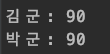 이제 김군과 박군은 모두 90점이 나오게 됩니다.