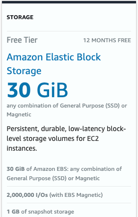 EC2에 비해서, SSD 20GB의 용량에 대한 제한을 주의해 주어야 합니다.