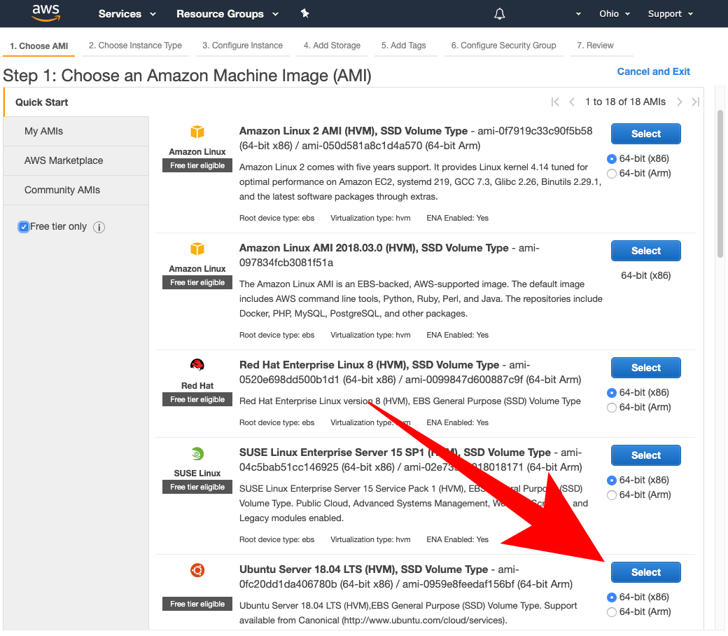 FreeTier에 해당하는 Instance를 선택해서 EC2 서버를 론칭할 텐데요.