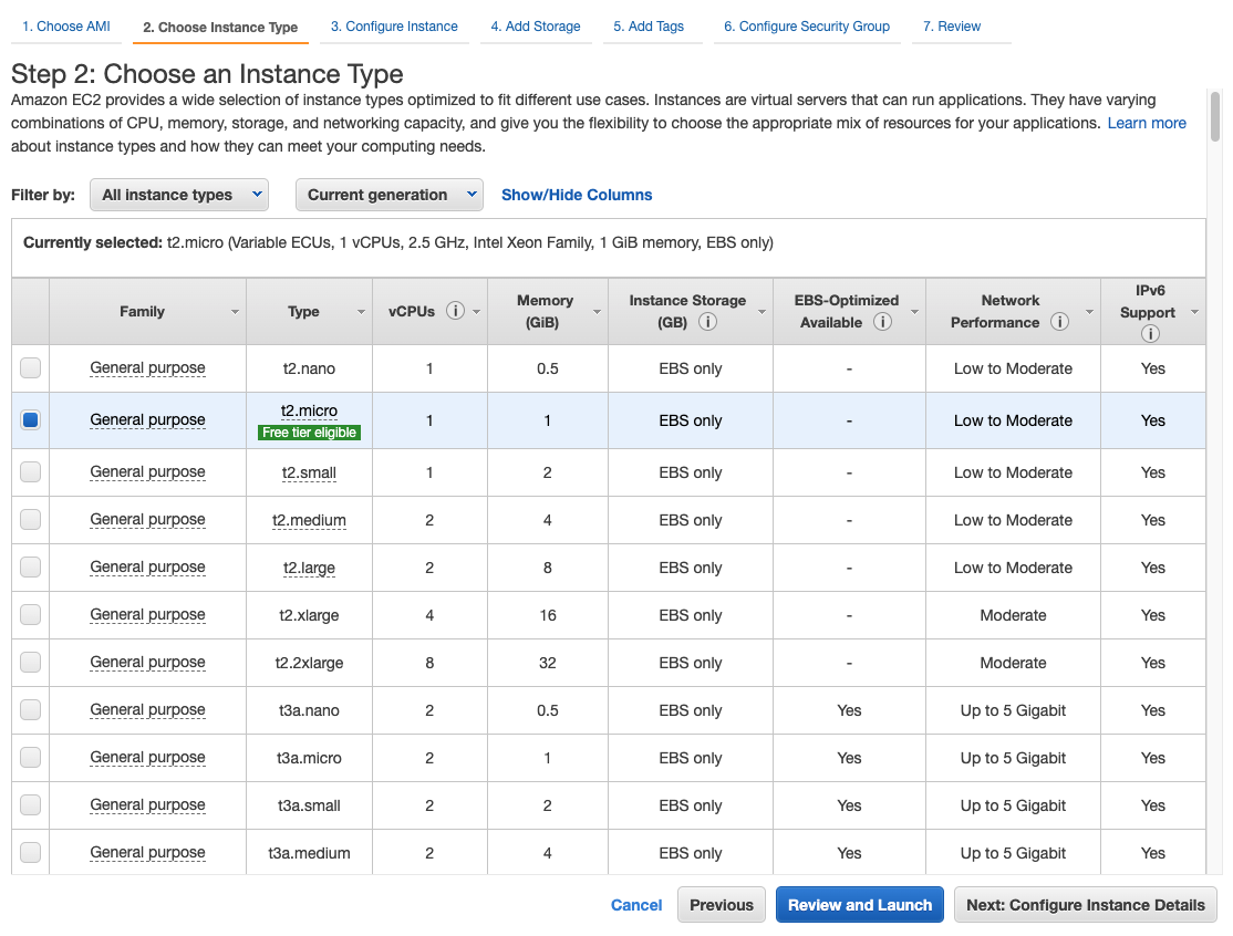 하지만, FreeTier에 해당하는 사양은 t2.micro하나뿐이므로,