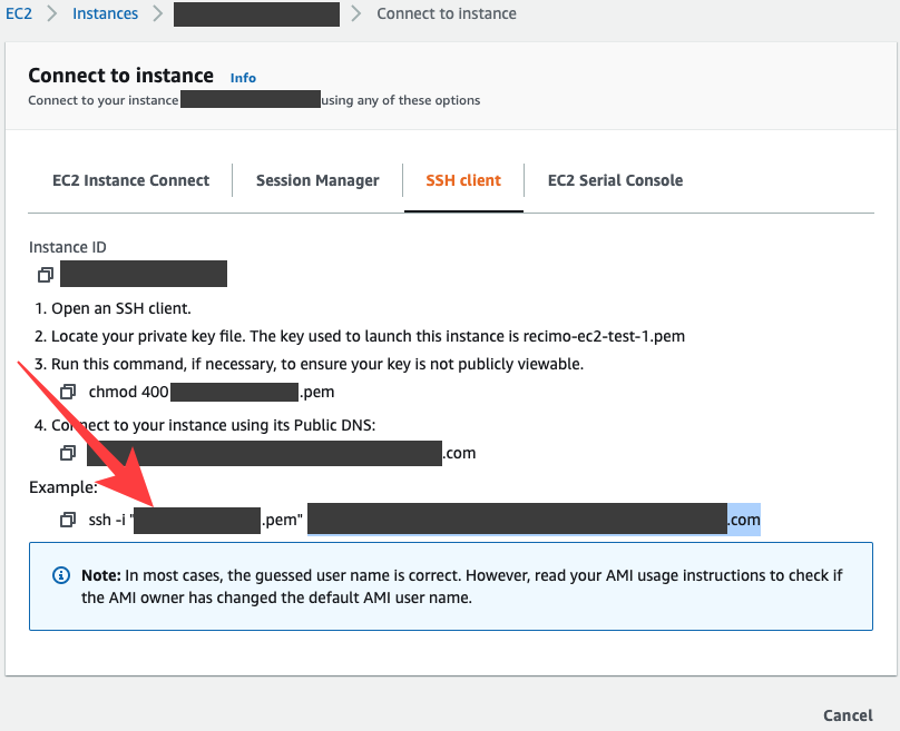 화살표가 알려주는 부분에 pem파일의 위치를 자신이 저장해놓은 위치로 수정한 다음,