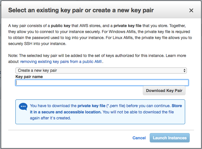 keyPair의 이름을 정해주고, download keypair를 선택해 주시면 됩니다.