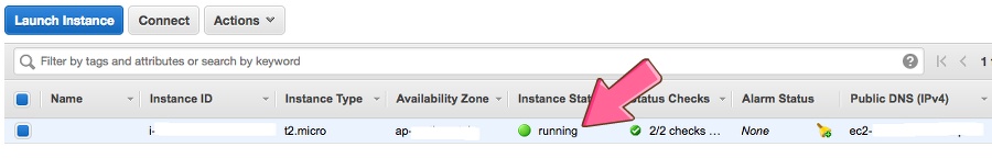Services> EC2>Instance에서, 아래와 같이 running상태인 인스턴스를 볼 수 있습니다.