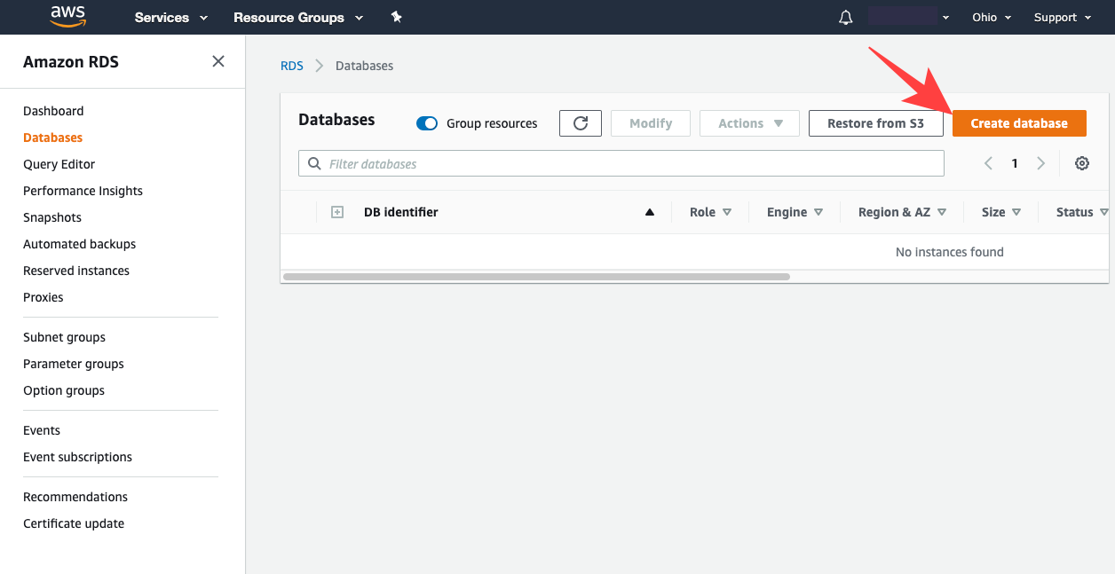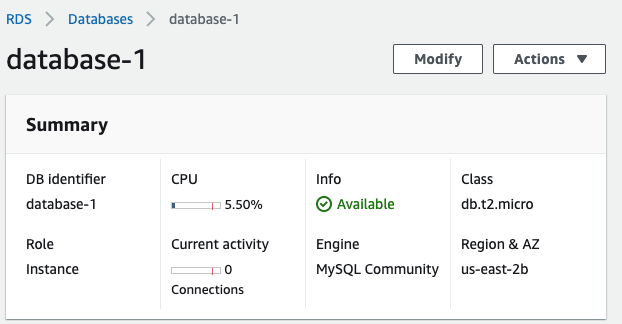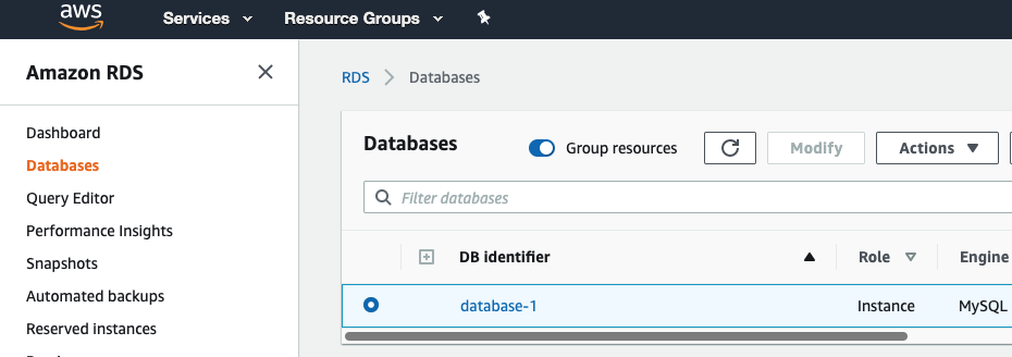 아래와 같이 생성된 DB Instance를 볼 수 있는데요.