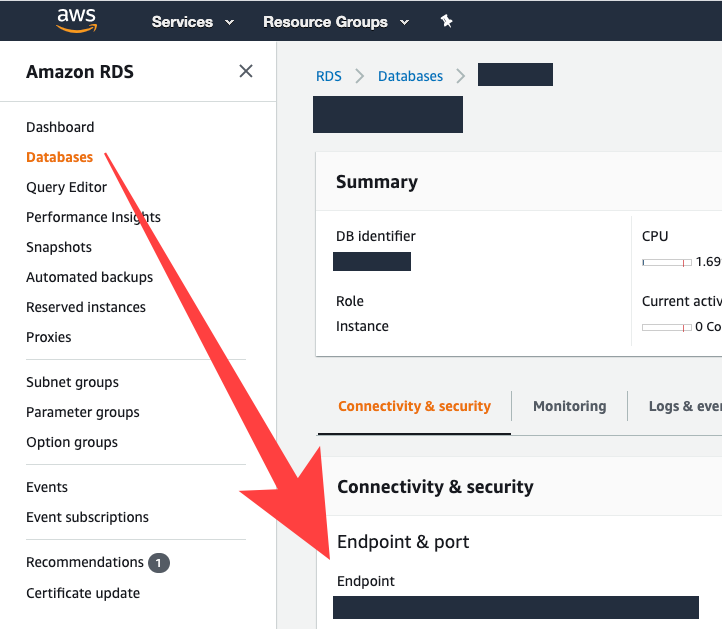 이제 해야 할 것은 EC2 에서 RDS에 접속해야할 endpoint를 알아오는 것 입니다.