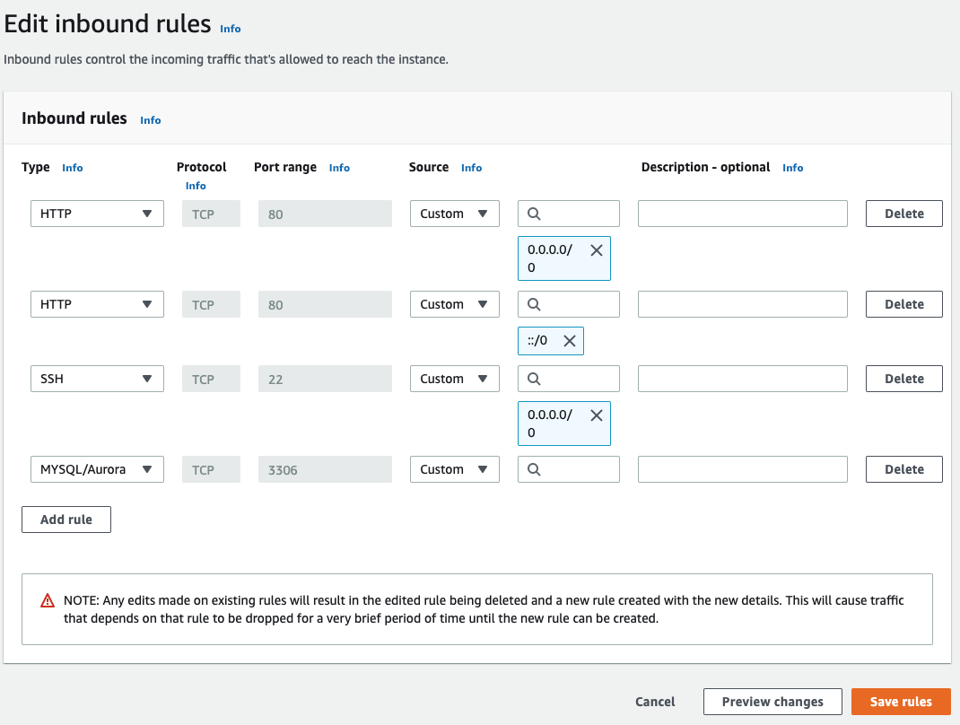 우측상단의 Edit inbound rules를 클릭해 준다음,