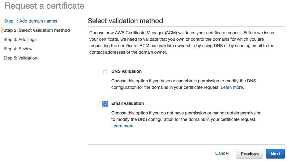 기존에 AWS Certificate Manager를 통해서 발급을 받지 않았다면,