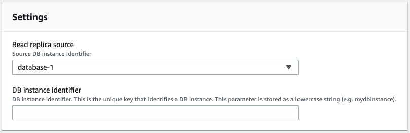 DB Instace Identifier는 Slave가 될 RDB Instance의 이름을 가르킵니다.