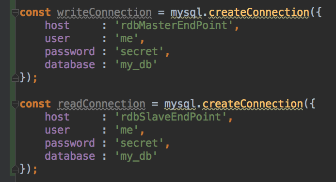 NodeJS에서 아래와 같이 host부분에 read와 writeConnection을 서로 다르게 설정 해 주면 되겠습니다.