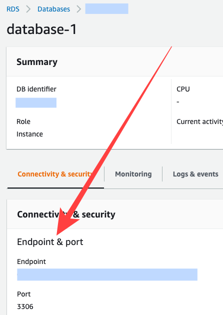 host위치는 RDS에서 각각의 Instance를 선택하면 나오는 화면에서,