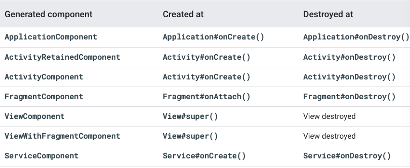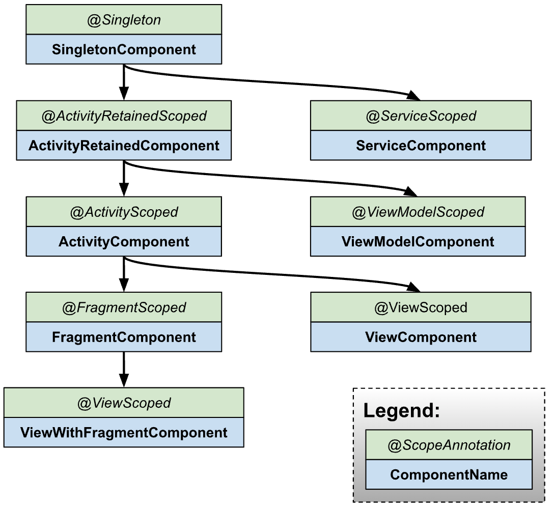 Hilt에서는 각 Class들에 대응하는 Component와 Scope를 같이 유지함으로써,