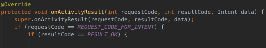 다음으로 callback인 onActivityResult를 정의하였습니다.