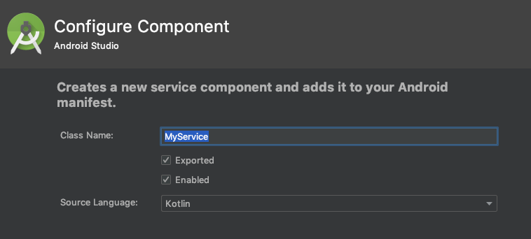Service를 생성할때는, Activity나 Fragment를 만드는 것처럼 AndroidStudio를 이용해서 만들면 편합니다.