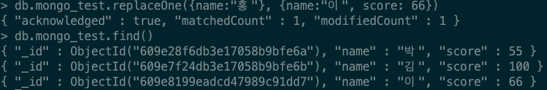 사용방법도 같은데요. _id 필드만 유지되고, 나머지 것은 새롭게 <replace>로 대체됩니다.