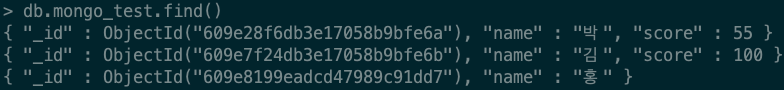 위에서 만들어 보았던, mongo_test Collection에 적용해보면 아래와 같이,