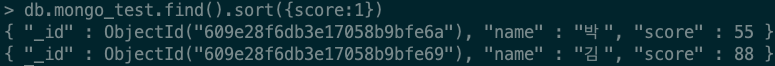 db.Collection명.find().sort(<field명>: 오름차순이면 1, 내림차순이면 -1)