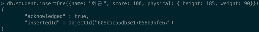 insertOne() 은 자동으로 생성되는 _id 필드를 아래와 같이 return해 줍니다.