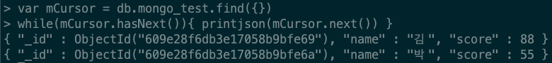 cursor에는 hasNext()라는 메소드를 이용해 iterate을 할 수도 있구요.
