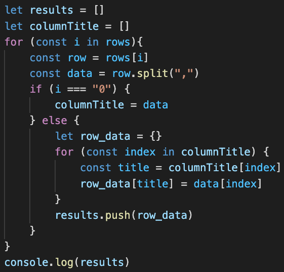results라는 list에 이렇게 저장한 객체들을 push해 주기만 하면 모든 데이터가 result에 들어가게 됩니다.