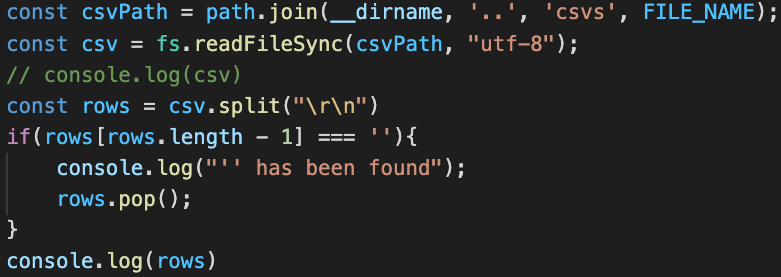 이렇게 split을 해주었는데, csv파일의 비어있는 개행이 들어가서 아무것도 없는 ''가 들어가 있을 경우가 있습니다.