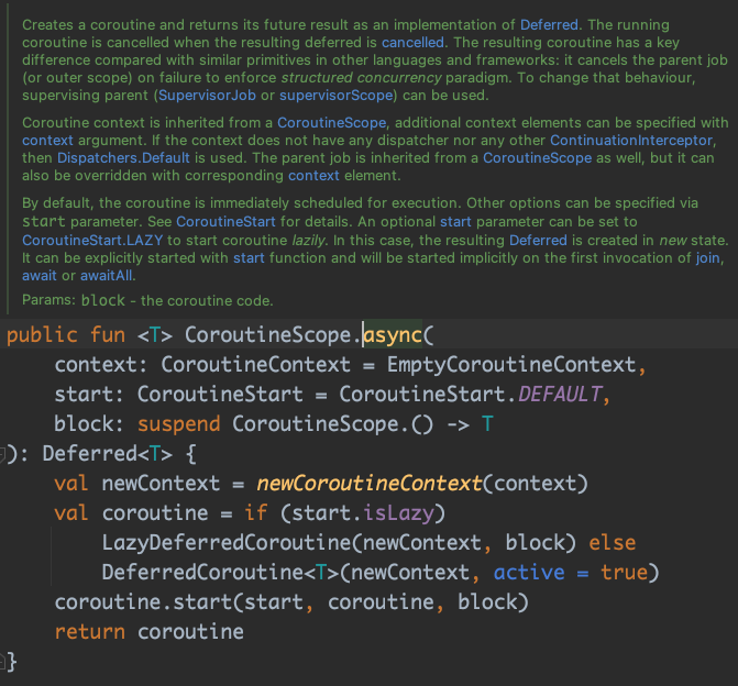 CoroutineContext에 대해서는 글의 아래부분에서 좀 더 다루도록 하겠습니다.