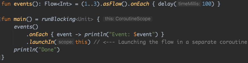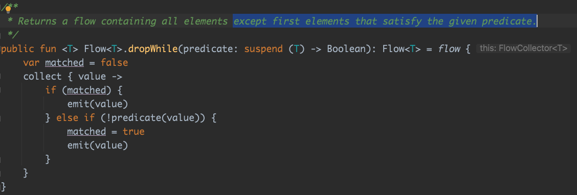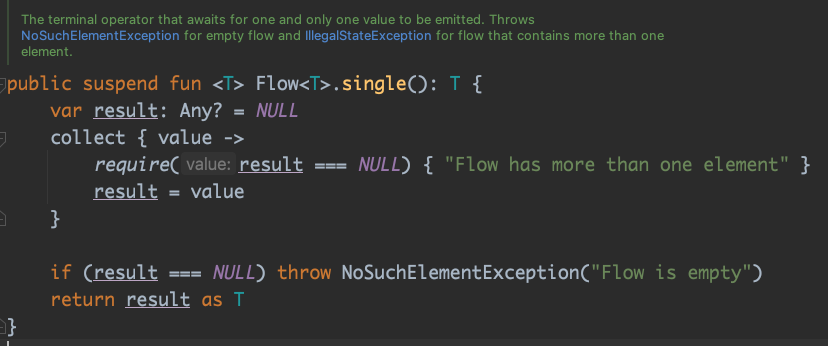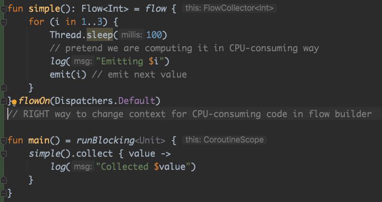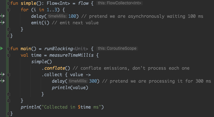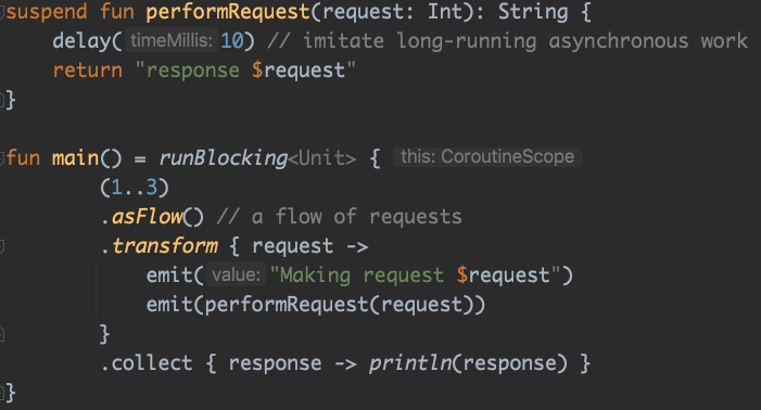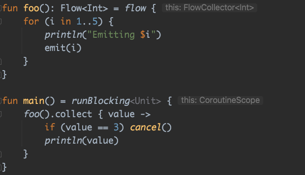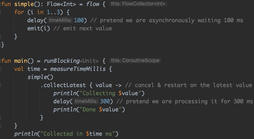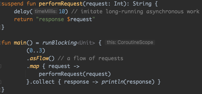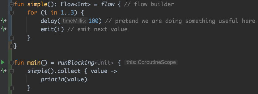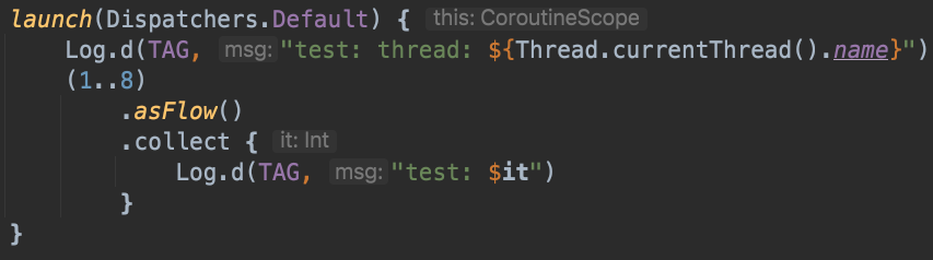 collect()함수만 Coroutine 블록안에서 실행되면 되는 것 이지요.