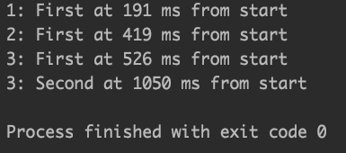 250ms안에 2개의 아이템이 흘러들어와서 print를 하고 종료됩니다.