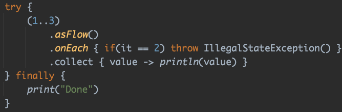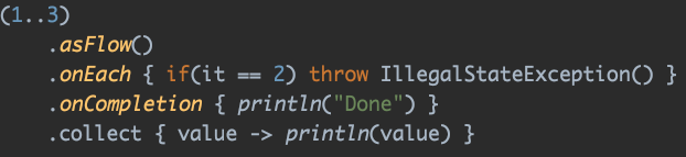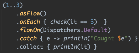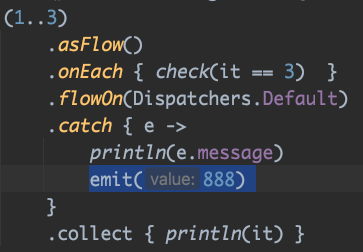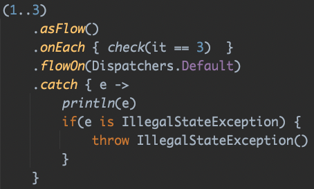 onEach에서 만약 3이면 IllegalStateException이 나도록 해주는 check함수를 사용해 주었습니다.