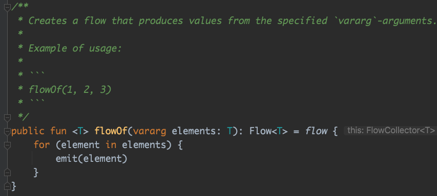 flowOf는 정해진 값의 set을 내부적으로 반복문을 돌려서 emit 해 줍니다.