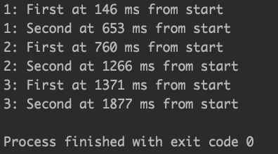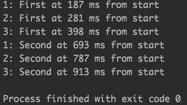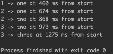 실행해보면 100ms의 딜레이를 가지고 아이템들이 흘러나오는 것을 볼 수 있습니다.