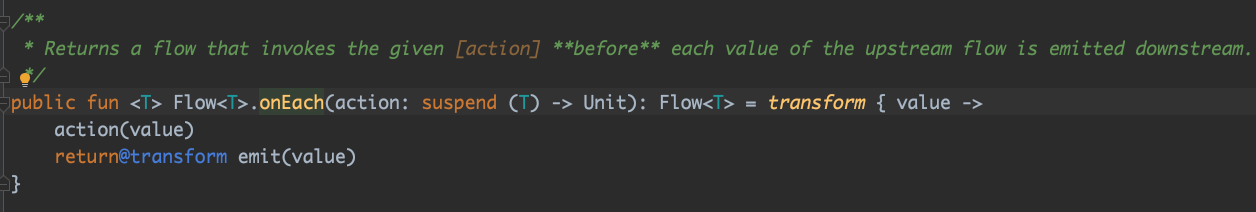 onEach는 주어진 action을 하는 flow를 return 해 줍니다.
