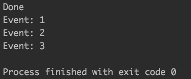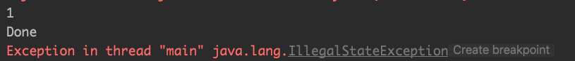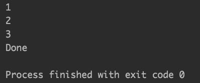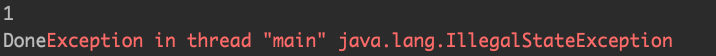 실행해 보면 다음과 같이 Exception이 발생했음에도 "Done"이 찍힌 것을 볼 수 있습니다.