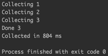 결과는 아래와 같이 collecting이 끝나고, "Done"이 찍히는 것을 볼 수 있습니다.