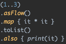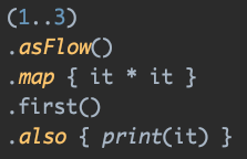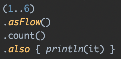 아래와 같이, asFlow 같은 확장함수를 사용한 경우는 동작하지 않습니다.