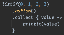 asFlow는 코틀린의 컬렉션이나 시퀀스를 Flow로 바로 변환해 주는 함수입니다.