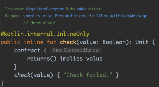 inline함수인데요. 조건이 false이면 IllegalStateException을 내줍니다.