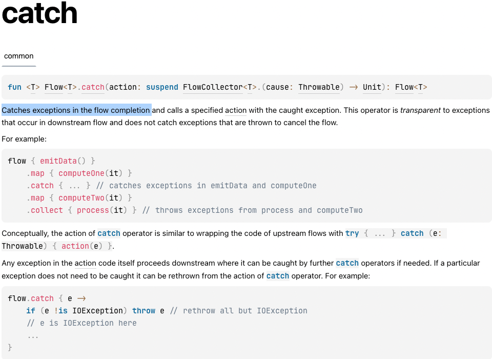 flow에서는 catch 연산자를 사용해서 Exception을 처리할 수 있습니다.