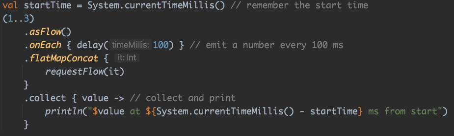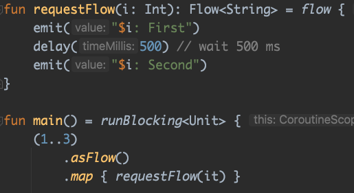 flatMapConcat에 it으로 넘어온 값과 requestFlow의 flow연산이 합쳐져서 아래와 같이 나옵니다.
