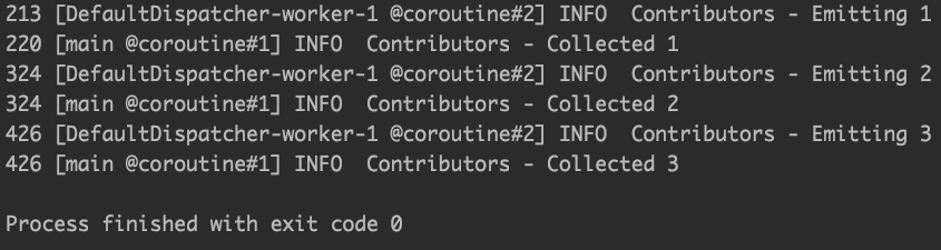 flatMapConcat을 실행해 보면, 순서대로 아이템들을 결합한다는 것을 알 수 있습니다.