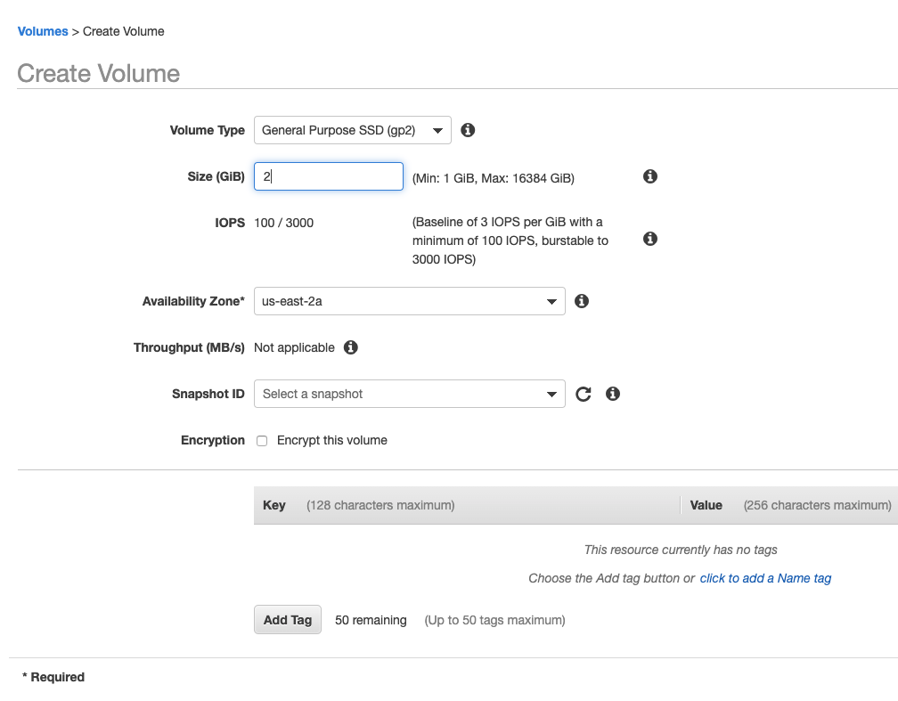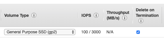 Volume Type은 기본값인 General Purpose나 Provisioned IOPS등을 선택할 수 있는데요.